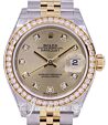 - Rolex Lady Datejust 28 Yellow Gold/Steel Champagne Diamond Dial & Diamond Bezel Oyster Bracelet 279383RBR Rolex Lady Datejust 28 Yellow ... Bezel Oyster Bracelet 279383RBRRetail Price: Regular Price $19,700 Save: $801 (4%) Our Price: Special Price $18,899