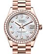 - Rolex Datejust 31 Rose Gold White Mother of Pearl Dial & Diamond Bezel President Bracelet 278285RBR Rolex Datejust 31 Rose Gold White ... Bezel President Bracelet 278285RBRRetail Price: Regular Price $53,150 Save: $51 (0%) Our Price: Special Price $53,099