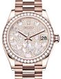 - Rolex Datejust 31 Rose Gold Rose Roman Dial & Diamond Bezel President Bracelet 278285RBR Rolex Datejust 31 Rose Gold Rose Roman ... Bezel President Bracelet 278285RBRRetail Price: Regular Price $50,700 Save: $1 (0%) Our Price: Special Price $50,699