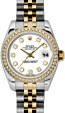 - Rolex Lady Datejust 28 Yellow Gold/Steel White Roman Dial & Diamond Bezel Oyster Bracelet 279383RBR Rolex Lady Datejust 28 Yellow ... Bezel Oyster Bracelet 279383RBRRetail Price: Regular Price $17,700 Save: $801 (5%) Our Price: Special Price $16,899