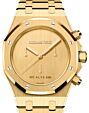 Originally introduced in 1972 and designed by Gerald Genta. The AP Royal Oak stands as the first luxury sports watch... to be constructed from stainless steel, the Royal Oak collection has achieved iconic status and is now considered to be Audemars Piguet's flagship model. The watches have unique aesthetic appeal, thanks to their unmistakable octagonal bezels, while the dials each feature a trademark “tapisserie” pattern, adding to the pure visual appeal. Today, many variants of the watch are available, with their own unique features. These models include the Royal Oak Chronograph, which offers three different counters, as well as date display, and is water resistant for up to 50 meters. Read more Show less
