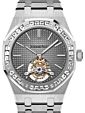 Originally introduced in 1972 and designed by Gerald Genta. The AP Royal Oak stands as the first luxury sports watch... to be constructed from stainless steel, the Royal Oak collection has achieved iconic status and is now considered to be Audemars Piguet's flagship model. The watches have unique aesthetic appeal, thanks to their unmistakable octagonal bezels, while the dials each feature a trademark “tapisserie” pattern, adding to the pure visual appeal. Today, many variants of the watch are available, with their own unique features. These models include the Royal Oak Chronograph, which offers three different counters, as well as date display, and is water resistant for up to 50 meters. Read more Show less