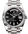 - Rolex Day-Date 40 President White Gold Bright Black Baguette Diamond Dial 228239 Rolex Day-Date 40 President White Gold Bright Black Baguette Diamond Dial 228239Retail Price: Regular Price $52,050 Save: $1,051 (2%) Our Price: Special Price $50,999