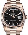 - Rolex Day-Date 36 Rose Gold Black Index Dial & Fluted Bezel President Bracelet 118235 Rolex Day-Date 36 Rose Gold Black Index ... Fluted Bezel President Bracelet 118235Retail Price: Regular Price $34,050 Save: $4,851 (14%) Our Price: Special Price $29,199