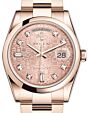 - Rolex Day-Date 36 Rose Gold Pink Diamond Dial & Smooth Domed Bezel Oyster Bracelet 118205 Rolex Day-Date 36 Rose Gold Pink ... Domed Bezel Oyster Bracelet 118205Retail Price: Regular Price $35,450 Save: $3,451 (10%) Our Price: Special Price $31,999