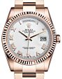 - Rolex Day-Date 36 Rose Gold White Roman Dial & Fluted Bezel President Bracelet 118235 Rolex Day-Date 36 Rose Gold White Roman ... Fluted Bezel President Bracelet 118235Retail Price: Regular Price $34,050 Save: $51 (0%) Our Price: Special Price $33,999