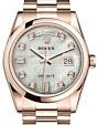 - Rolex Datejust 31 Lady Midsize Rose Gold White Mother of Pearl Diamond Dial & Smooth Domed Bezel President Bracelet 278245 Rolex Datejust 31 Lady Midsize Rose ... Domed Bezel President Bracelet 278245Retail Price: Regular Price $35,400 Save: $2,401 (7%) Our Price: Special Price $32,999