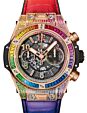 - Hublot Big Bang Unico Chronograph Rainbow King Gold 45mm King Gold-Rainbow Gems Colored Gems Bezel Skeleton With Colored Gems Dial Rubber/ Alligator Leather Strap 411.OX.9910.LR.0999 Hublot Big Bang Unico Chronograph ... Leather Strap 411.OX.9910.LR.0999Retail Price: Regular Price $94,700 Save: $23,501 (25%) Our Price: Special Price $71,199