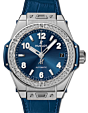 - Hublot Big Bang One Click 3-Hands Steel Blue Diamonds 39mm Blue Dial Rubber and Alligator Leather Straps 465.SX.7170.LR.1204 Hublot Big Bang One Click 3-Hands Steel ... Leather Straps 465.SX.7170.LR.1204Retail Price: Regular Price $15,100 Save: $1,501 (10%) Our Price: Special Price $13,599