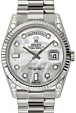 - Rolex Day-Date 36 President White Gold White Mother of Pearl Diamond Dial Fluted Bezel 128239 Rolex Day-Date 36 President White Gold ... Pearl Diamond Dial Fluted Bezel 128239Retail Price: Regular Price $47,300 Save: $9,301 (20%) Our Price: Special Price $37,999