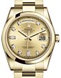 - Rolex Day-Date 36 Yellow Gold Champagne Diamond Dial & Smooth Domed Bezel President Bracelet 118208 Rolex Day-Date 36 Yellow Gold Champagne ... Domed Bezel President Bracelet 118208Retail Price: Regular Price $34,250 Save: $6,351 (19%) Our Price: Special Price $27,899