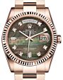- Rolex Day-Date 36 Rose Gold Black Mother of Pearl Diamond Dial & Fluted Bezel President Bracelet 118235 Rolex Day-Date 36 Rose Gold Black ... Fluted Bezel President Bracelet 118235Retail Price: Regular Price $38,850 Save: $6,351 (16%) Our Price: Special Price $32,499