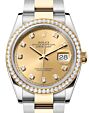 - Rolex Datejust 36 Yellow Gold/Steel Champagne Diamond Dial & Diamond Bezel Oyster Bracelet 126283RBR Rolex Datejust 36 Yellow Gold/Steel ... Bezel Oyster Bracelet 126283RBRRetail Price: Regular Price $23,300 Save: $901 (4%) Our Price: Special Price $22,399
