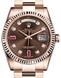 - Rolex Day-Date 36 Rose Gold Chocolate Diamond & Rubies Dial & Smooth Domed Bezel President Bracelet 118205 Rolex Day-Date 36 Rose Gold Chocolate ... Domed Bezel President Bracelet 118205Retail Price: Regular Price $36,950 Save: $51 (0%) Our Price: Special Price $36,899