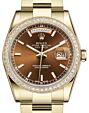 - Rolex Day-Date 36 Yellow Gold Cognac Index Dial & Diamond Bezel Oyster Bracelet 118348 Rolex Day-Date 36 Yellow Gold Cognac ... Diamond Bezel Oyster Bracelet 118348Retail Price: Regular Price $43,700 Save: $7,901 (18%) Our Price: Special Price $35,799