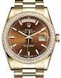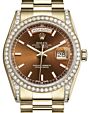 - Rolex Day-Date 36 Yellow Gold Cognac Index Dial & Diamond Bezel President Bracelet 118348 Rolex Day-Date 36 Yellow Gold Cognac ... Bezel President Bracelet 118348Retail Price: Regular Price $45,300 Save: $8,401 (19%) Our Price: Special Price $36,899