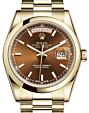 - Rolex Day-Date 36 Yellow Gold Cognac Index Dial & Smooth Domed Bezel President Bracelet 118208 Rolex Day-Date 36 Yellow Gold Cognac ... Domed Bezel President Bracelet 118208Retail Price: Regular Price $31,250 Save: $5,751 (18%) Our Price: Special Price $25,499