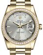 - Rolex Day-Date 36 Yellow Gold Silver Index Dial & Diamond Bezel President Bracelet 118348 Rolex Day-Date 36 Yellow Gold Silver ... Bezel President Bracelet 118348Retail Price: Regular Price $45,300 Save: $6,201 (14%) Our Price: Special Price $39,099