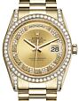 - Rolex Day-Date 36 Yellow Gold Champagne Set with Diamonds Roman Dial & Fluted Bezel President Bracelet 118238 Rolex Day-Date 36 Yellow Gold Champagne ... Fluted Bezel President Bracelet 118238Retail Price: Regular Price $36,550 Save: $4,851 (13%) Our Price: Special Price $31,699