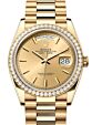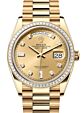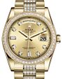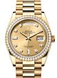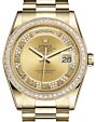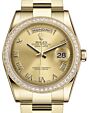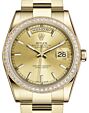- Rolex Day-Date 36 Yellow Gold Champagne Set with Diamonds Roman Dial & Diamond Bezel President Bracelet 118348 Rolex Day-Date 36 Yellow Gold Champagne ... Bezel President Bracelet 118348Retail Price: Regular Price $50,500 Save: $7,001 (14%) Our Price: Special Price $43,499