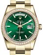 - Rolex Day-Date 36 Yellow Gold Green Index Dial & Diamond Bezel Oyster Bracelet 118348 Rolex Day-Date 36 Yellow Gold Green ... Diamond Bezel Oyster Bracelet 118348Retail Price: Regular Price $43,700 Save: $7,901 (18%) Our Price: Special Price $35,799