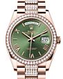 - Rolex Day-Date 40 President Rose Gold Olive Green Roman Dial Diamond Bezel 228345RBR Rolex Day-Date 40 President Rose Gold ... Roman Dial Diamond Bezel 228345RBRRetail Price: Regular Price $67,300 Save: $2,301 (3%) Our Price: Special Price $64,999