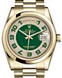 - Rolex Day-Date 36 Yellow Gold Green Diamond Paved Arabic Dial & Smooth Domed Bezel President Bracelet 118208 Rolex Day-Date 36 Yellow Gold Green ... Domed Bezel President Bracelet 118208Retail Price: Regular Price $45,400 Save: $6,201 (14%) Our Price: Special Price $39,199