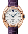 - Cartier Cle De Silver Diamond Dial Rose Gold Bezel Purple Leather Strap 31mm WJCL0031 Cartier Cle De Silver Diamond Dial Rose ... Purple Leather Strap 31mm WJCL0031Retail Price: Regular Price $13,000 Save: $3,401 (26%) Our Price: Special Price $9,599
