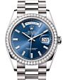 - Rolex Day-Date 36 President White Gold Blue Ombre Diamond Dial & Bezel 128399TBR Rolex Day-Date 36 President White Gold ... Diamond Dial & Bezel 128399TBRRetail Price: Regular Price $89,450 Save: $2,851 (3%) Our Price: Special Price $86,599