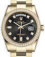- Rolex Day-Date 36 Yellow Gold Black Diamond Dial & Diamond Bezel Oyster Bracelet 118348 Rolex Day-Date 36 Yellow Gold Black ... Diamond Bezel Oyster Bracelet 118348Retail Price: Regular Price $46,700 Save: $8,410 (18%) Our Price: Special Price $38,290