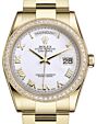 - Rolex Day-Date 36 Yellow Gold White Roman Dial & Diamond Bezel Oyster Bracelet 118348 Rolex Day-Date 36 Yellow Gold White ... Diamond Bezel Oyster Bracelet 118348Retail Price: Regular Price $43,700 Save: $7,901 (18%) Our Price: Special Price $35,799