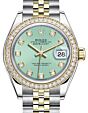 - Rolex Lady Datejust 28 Yellow Gold/Steel Mint Green Diamond Dial & Diamond Bezel Oyster Bracelet 279383RBR Rolex Lady Datejust 28 Yellow ... Bezel Oyster Bracelet 279383RBRRetail Price: Regular Price $16,850 Save: $751 (4%) Our Price: Special Price $16,099