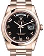 - Rolex Day-Date 36 Rose Gold Black Arabic Dial & Smooth Domed Bezel President Bracelet 118205 Rolex Day-Date 36 Rose Gold Black ... Domed Bezel President Bracelet 118205Retail Price: Regular Price $33,950 Save: $3,951 (12%) Our Price: Special Price $29,999