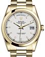 - Rolex Day-Date 36 Yellow Gold White Index Dial & Smooth Domed Bezel President Bracelet 118208 Rolex Day-Date 36 Yellow Gold White ... Domed Bezel President Bracelet 118208Retail Price: Regular Price $31,250 Save: $5,751 (18%) Our Price: Special Price $25,499