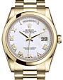 - Rolex Day-Date 36 Yellow Gold White Roman Dial & Smooth Domed Bezel President Bracelet 118208 Rolex Day-Date 36 Yellow Gold White ... Domed Bezel President Bracelet 118208Retail Price: Regular Price $31,250 Save: $5,751 (18%) Our Price: Special Price $25,499