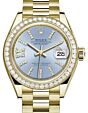 - Rolex Lady Datejust 28 Yellow Gold Cornflower Blue Diamond Index/Roman IX Dial & Diamond Bezel President Bracelet 279138RBR Rolex Lady Datejust 28 Yellow Gold ... Bezel President Bracelet 279138RBRRetail Price: Regular Price $39,050 Save: $3,251 (8%) Our Price: Special Price $35,799