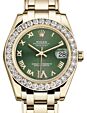 - Rolex Pearlmaster 34 Yellow Gold Olive Green Roman & Diamond VI Dial & Diamond Bezel Pearlmaster Bracelet 81298 Rolex Pearlmaster 34 Yellow Gold Olive ... Bezel Pearlmaster Bracelet 81298Retail Price: Regular Price $48,050 Save: $8,100 (17%) Our Price: Special Price $39,950