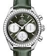 - Omega Speedmaster Steel/Diamonds Green Dial Leather Strap 324.18.38.50.60.001 Omega Speedmaster Steel/Diamonds Green Dial Leather Strap 324.18.38.50.60.001Retail Price: Regular Price $17,400 Save: $1,601 (9%) Our Price: Special Price $15,799