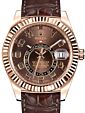 - Rolex Sky-Dweller Rose Gold 42mm Chocolate Arabic 18k Leather Strap 326135 Rolex Sky-Dweller Rose Gold 42mm Chocolate Arabic 18k Leather Strap 326135Retail Price: Regular Price $39,000 Save: $8,001 (21%) Our Price: Special Price $30,999