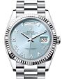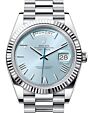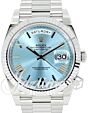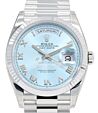 - Rolex Day-Date 36 President Platinum Ice Blue Roman Dial & Fluted Bezel 128236 Rolex Day-Date 36 President Platinum ... Roman Dial & Fluted Bezel 128236Retail Price: Regular Price $58,900 Save: $3,901 (7%) Our Price: Special Price $54,999