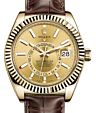 - Rolex Sky-Dweller Yellow Gold Champagne Index Dial Fluted Bezel Leather Strap 326138 Rolex Sky-Dweller Yellow Gold Champagne ... Dial Fluted Bezel Leather Strap 326138Retail Price: Regular Price $40,000 Save: $1 (0%) Our Price: Special Price $39,999