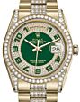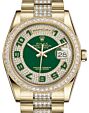 - Rolex Day-Date 36 Yellow Gold Green Diamond Paved Arabic Dial & Diamond Set Case & Bezel President Bracelet 118388 Rolex Day-Date 36 Yellow Gold Green ... & Bezel President Bracelet 118388Retail Price: Regular Price $64,750 Save: $11,751 (18%) Our Price: Special Price $52,999