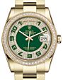 - Rolex Day-Date 36 Yellow Gold Green Diamond Paved Arabic Dial & Diamond Bezel Oyster Bracelet 118348 Rolex Day-Date 36 Yellow Gold Green ... Diamond Bezel Oyster Bracelet 118348Retail Price: Regular Price $57,850 Save: $10,451 (18%) Our Price: Special Price $47,399