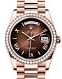 - Rolex Day-Date 36 President Rose Gold Brown Ombre Roman Dial Diamond Bezel 128345RBR Rolex Day-Date 36 President Rose Gold ... Roman Dial Diamond Bezel 128345RBRRetail Price: Regular Price $60,500 Save: $6,701 (11%) Our Price: Special Price $53,799