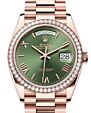 - Rolex Day-Date 36 President Rose Gold Green Aventurine Dial Diamond Bezel & Bracelet 128345RBR Rolex Day-Date 36 President Rose Gold ... Diamond Bezel & Bracelet 128345RBRRetail Price: Regular Price $125,100 Save: $16,701 (13%) Our Price: Special Price $108,399