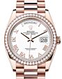 - Rolex Day-Date 36 President Rose Gold White Roman Dial Diamond Bezel 128345RBR Rolex Day-Date 36 President Rose Gold White Roman Dial Diamond Bezel 128345RBRRetail Price: Regular Price $60,500 Save: $6,701 (11%) Our Price: Special Price $53,799