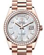 - Rolex Day-Date 36 President Rose Gold White Mother of Pearl Dial Diamond Bezel & Bracelet 128345RBR Rolex Day-Date 36 President Rose Gold ... Diamond Bezel & Bracelet 128345RBRRetail Price: Regular Price $121,700 Save: $5,901 (5%) Our Price: Special Price $115,799