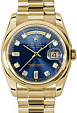- Rolex Day-Date 36 118208-BLUDDP Blue Diamond Yellow Gold President Rolex Day-Date 36 118208-BLUDDP Blue Diamond Yellow Gold PresidentRetail Price: Regular Price $34,250 Save: $6,351 (19%) Our Price: Special Price $27,899