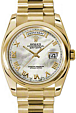 - Rolex Day-Date 36 Yellow Gold White Mother of Pearl Diamond Paved Roman Dial & Smooth Domed Bezel President Bracelet 118208 Rolex Day-Date 36 Yellow Gold White ... Domed Bezel President Bracelet 118208Retail Price: Regular Price $50,100 Save: $6,901 (14%) Our Price: Special Price $43,199