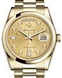 - Rolex Day-Date 36 Yellow Gold Champagne Index Dial & Smooth Domed Bezel President Bracelet 118208 Rolex Day-Date 36 Yellow Gold Champagne ... Domed Bezel President Bracelet 118208Retail Price: Regular Price $31,250 Save: $5,751 (18%) Our Price: Special Price $25,499